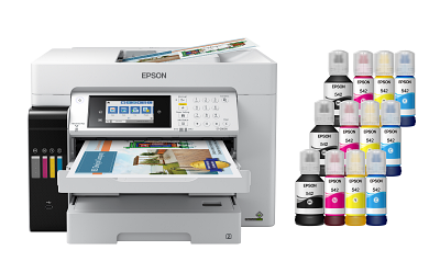 The WorkForce ST-C8000 color MFP Supertank includes enough ink to print up to 19,500 pages black/14,800 color. And, you save on printing — up to 60 percent lower total printing costs vs. color laser — that’s about 2 cents per color ISO page. PrecisionCore Heat-Free Technology™ delivers a fast first page out and high-volume, print-shop-quality output. This Supertank MFP with Epson® DURABrite® pigment-based ink produces vibrant prints up to 13" x 19" and scans up to 11" x 17". Plus, there’s zero cartridge waste and up to 85 percent lower power consumption than color laser printers. And, it’s backed by a 2-year limited warranty.